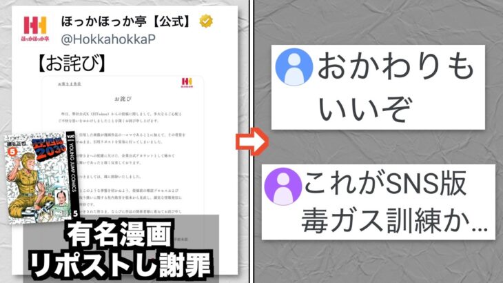 【マジかよ】ほっかほっか亭、「おかわりもいいぞ!」で有名な漫画の一コマを引用リポストし謝罪する https://youtu.be/os4s6h9PMps 【マジかよ】ほっかほっか亭、「おかわりもいいぞ!」で有名な漫画の一コマを引用リポストし謝罪する – 続きを見る(外部サイト)