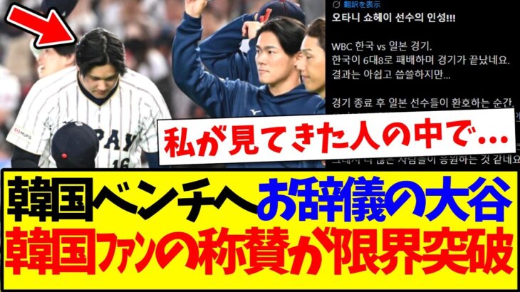 【衝撃】試合後に韓国ベンチへお辞儀する大谷翔平へ、称賛が限界突破してしまう韓国野球ファンの反応がこちらですwww https://youtu.be/2NrZuBH9WZE 【衝撃】試合後に韓国ベンチへお辞儀する大谷翔平へ、称賛が限界突破してしまう韓国野球ファンの反応がこちらですwww – 続きを見る(外部サイト)