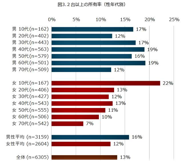 女性では10代、男性では40代・60代に多い「2台持ち」