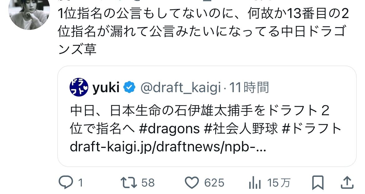 【悲報】中日、何故か2位指名が漏れる