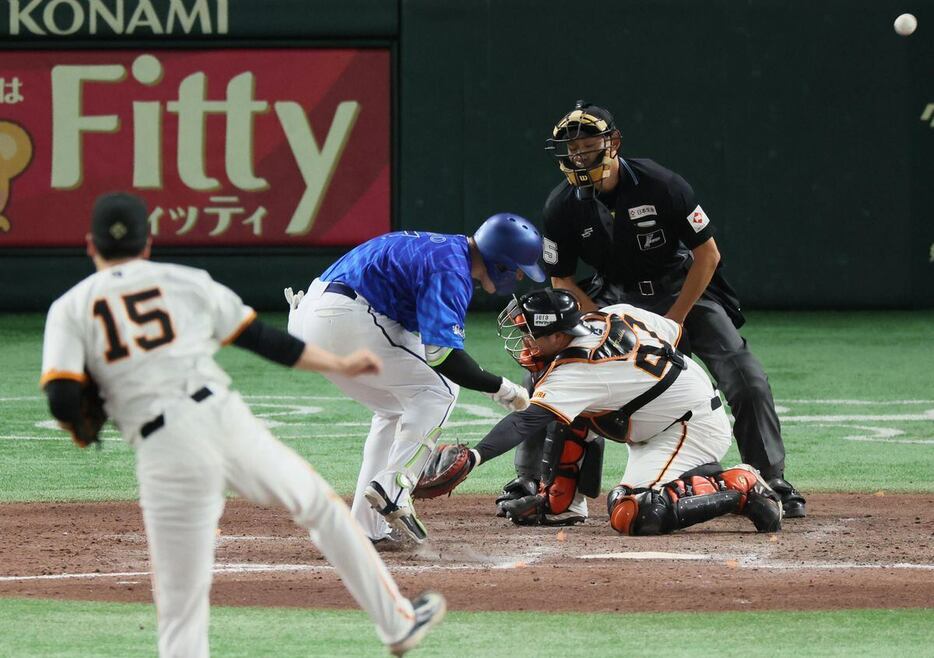 (JERA クライマックスシリーズ セ ファイナルステージ、巨人4-1DeNA、第4戦、DeNA3勝2敗、19日、東京D)DeNA・佐野恵太外野手(29)が「3番・左翼」で出場。九回に大勢の155キロ直球が右膝付近を直撃。治療のためベンチへと戻り、代走が告げられた。