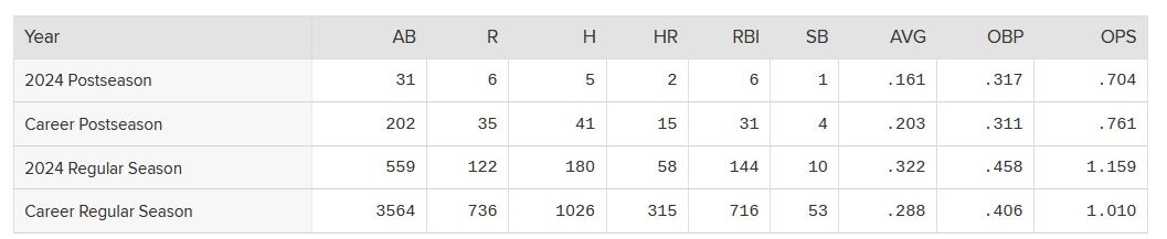 MLBナンバーワンバッターのアーロン・ジャッジさんのPSの成績wwwwwwwww