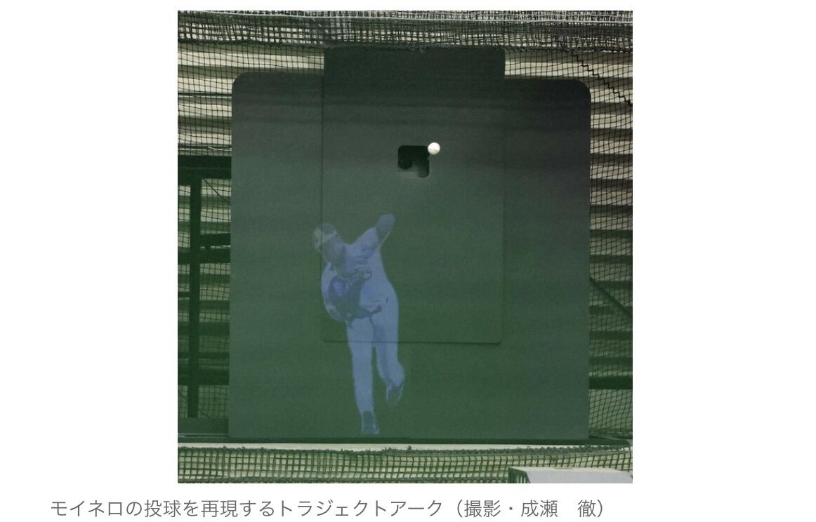 最新の測定機器で計測したデータを基に、回転率、変化量など細部まで投手の投球を再現する打撃マシン「トラジェクトアーク」だ。チームが9月に導入。実際の投手とほぼ同じ投球の軌道を相手に打撃練習を行うことができる。