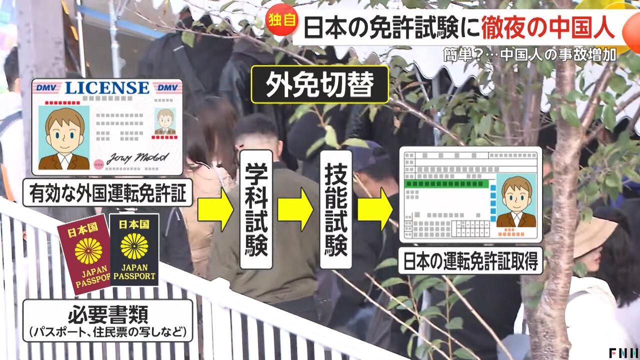【独自】中国人が午前5時の免許試験場に大行列…試験簡単で“外免切替”殺到し住所“ホテル”の中国人も合格 国際免許取得に利用か