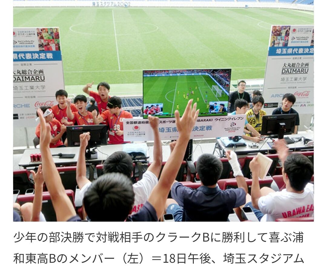 eスポーツ初の全国大会となる「全国都道府県対抗eスポーツ選手権」の県代表決定戦が18日、さいたま市緑区の埼玉スタジアムで開催された。サッカーゲームの「ウイニングイレブン2019」少年の部では、浦和東高Bが優勝し、県代表に選ばれた。