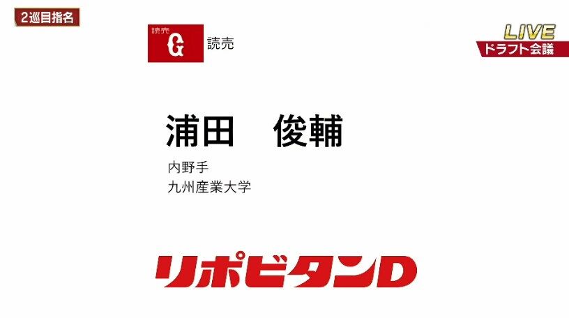 巨人、ドラフト2位で九産大・浦田俊輔内野手、ドラフト3位で上武大・荒巻悠内野手を指名