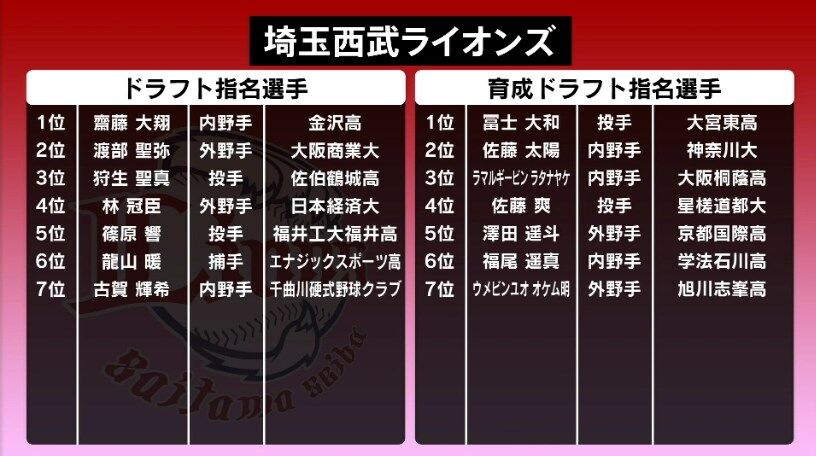 【朗報】西武ライオンズ、捕手1人内野手4人外野手3人指名www