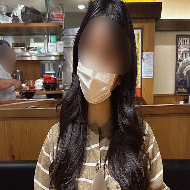 〈三田製麺所初めてきた~つけ麺とラーメンどっちが好き??〉──実にありふれたX(旧Twitter)への投稿。しかし、テーブルでつけ麺を前にした女性は、なぜか服をめくり、豊満な胸をむき出しにしている。背景に映り込んだ店員は、客の女性のあられもない姿に気づいていないようで、忙しそうに作業をしている。
