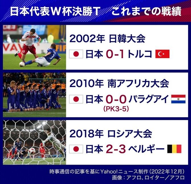 1998 GL敗退2002 16強2006 GL敗退2010 16強2014 GL敗退2018 16強2022 16強