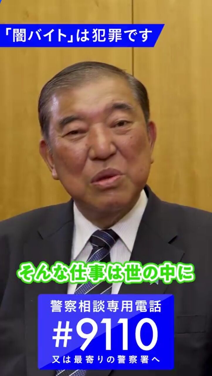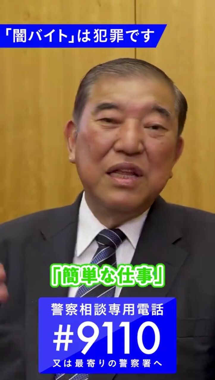 石破総理からのメッセージです。「闇バイト」は犯罪です。仕事の内容が分からないなど怪しい求人には応募しないでください。応募してしまった方も、勇気を持って抜け出し、すぐに警察に相談してください。警察はあなたを確実に保護します。 pic.twitter.com/2VgxlHreZh