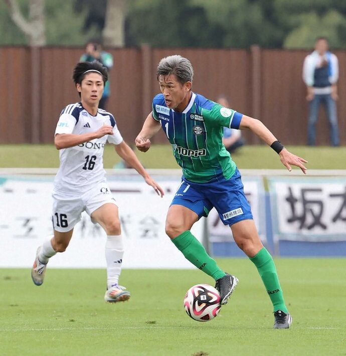 【サッカー】カズ、今季初先発で今季最長55分間プレー JFL最年長出場記録を57歳243日に更新