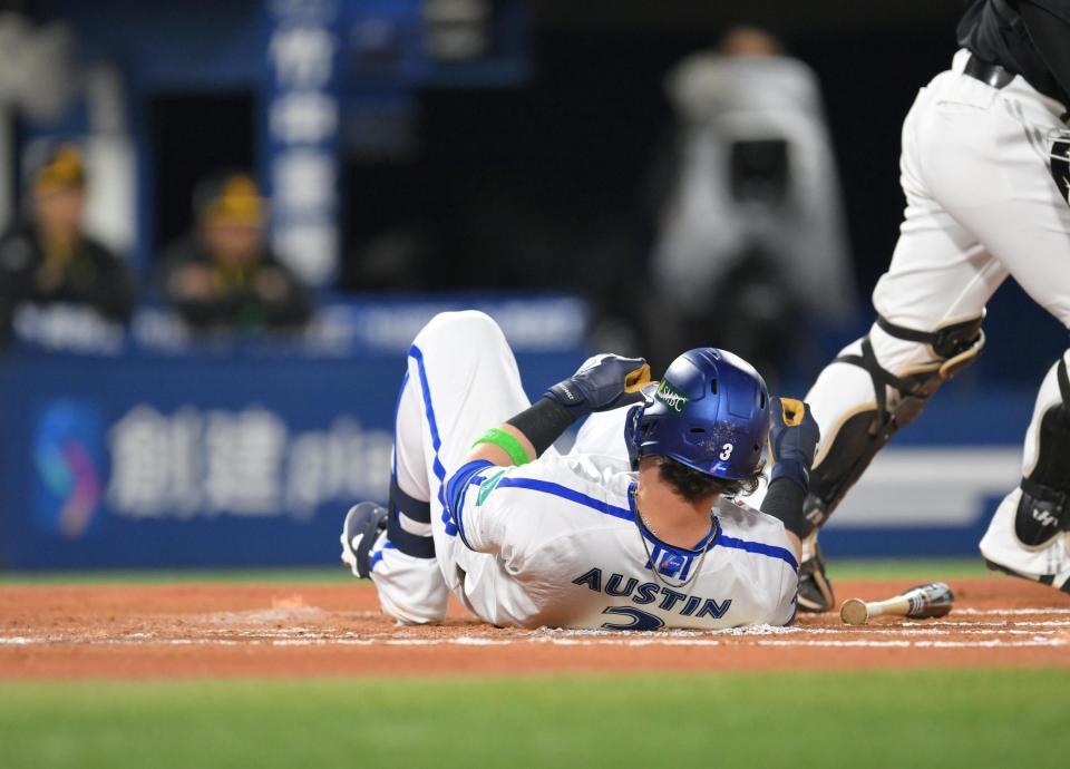 この日の試合前練習に4番の姿がなかった。オースティンは第1戦の六回、左足の甲に自打球を当て、倒れ込んでいた。その後も試合に出続け、九階にはフェンス直撃の二塁打を記録。試合に敗れはしたが、最後に意地を見せる口火を切り、代走が送られていた。