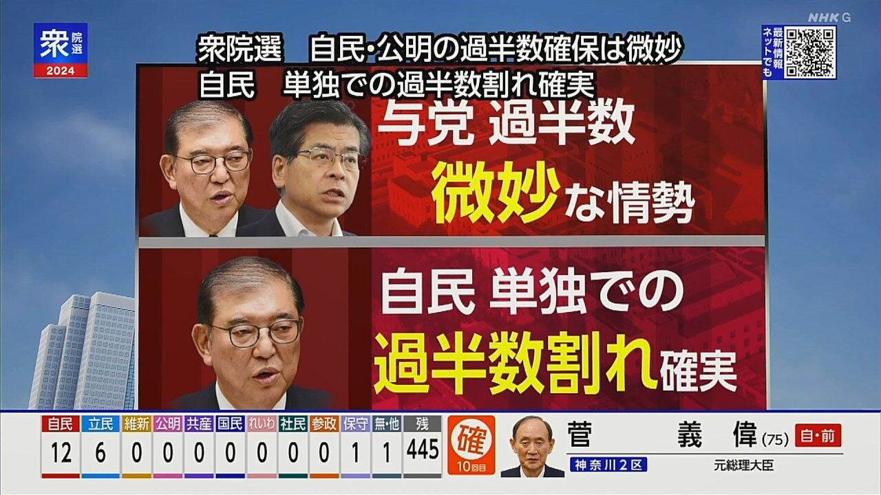 【NHK】衆院選 自民・公明 過半数確保は微妙 自民の過半数割れ確実