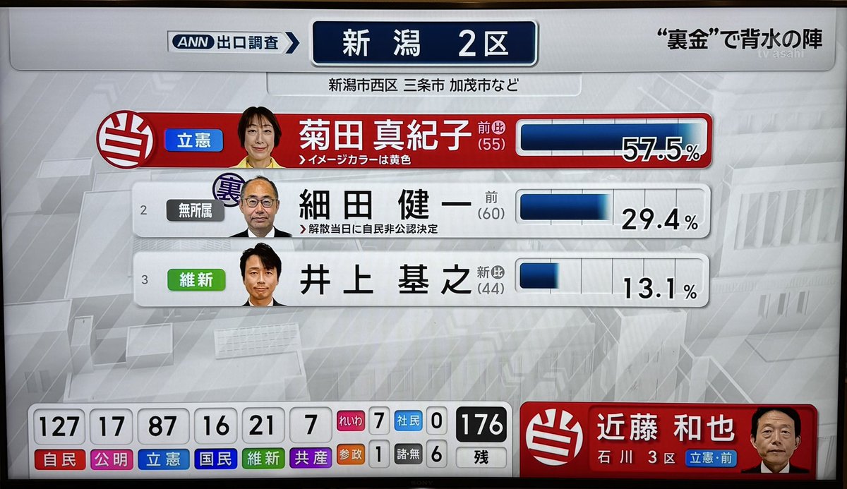 自.民党派閥の政治資金パーティーをめぐる裏金事件を受け、非公認とされた下村博文氏や高木毅氏、そして公認は受けるも涙ながらの訴えに批判が集中した丸川珠代氏らが落選となった。