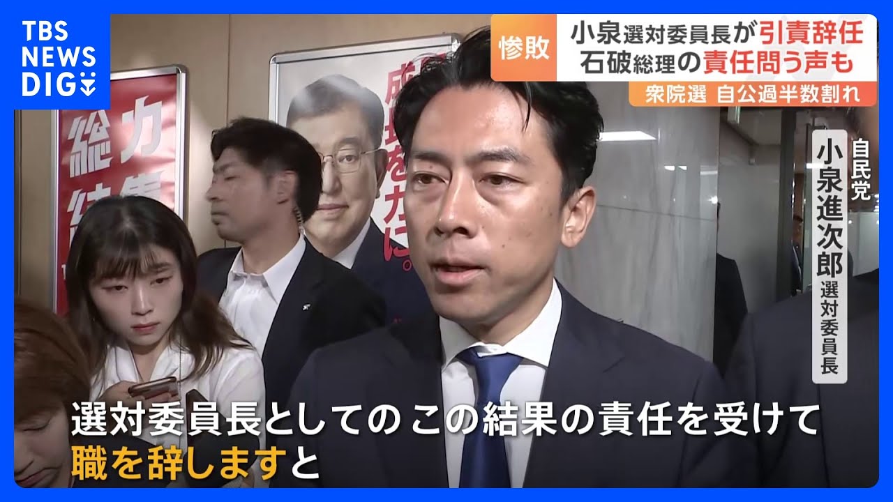 自民党の小泉進次郎選挙対策委員長は28日、石破首相(党総裁)に辞表を提出し、受理されたことを明らかにした。小泉氏は記者団に「目標を掲げて戦い、結果が出なかったら責任をとるのは当たり前だ」と語った。
