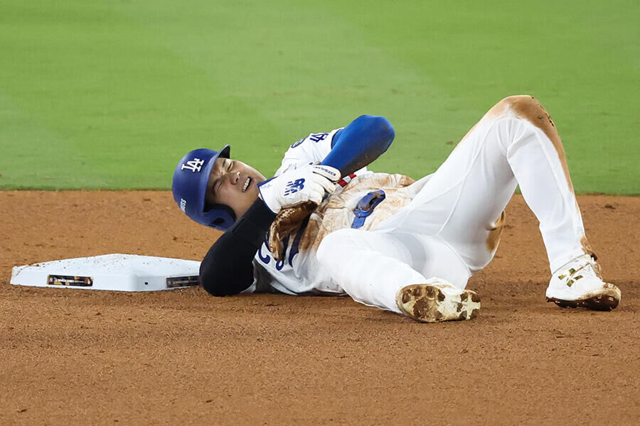 第2戦で盗塁を試みた際に左肩を負傷し、出場が心配されるなか第3戦も負傷をおしてスタメンに名を連ねた大谷。第1打席は四球を選んで出塁しフリーマンの2ランで先制のホームを踏んだ。