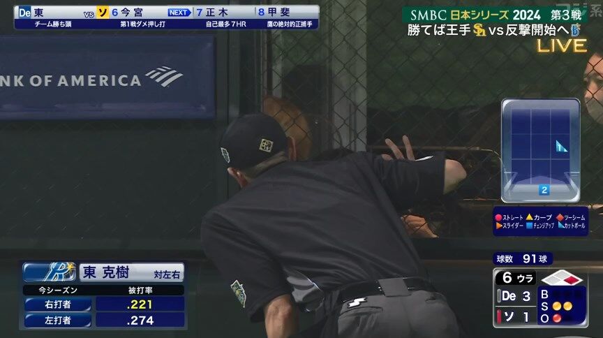 【日本シリーズ第3戦】DeNA・東克樹に観客の“妨害”行為か…投球間際の口笛自粛を球審に求める
