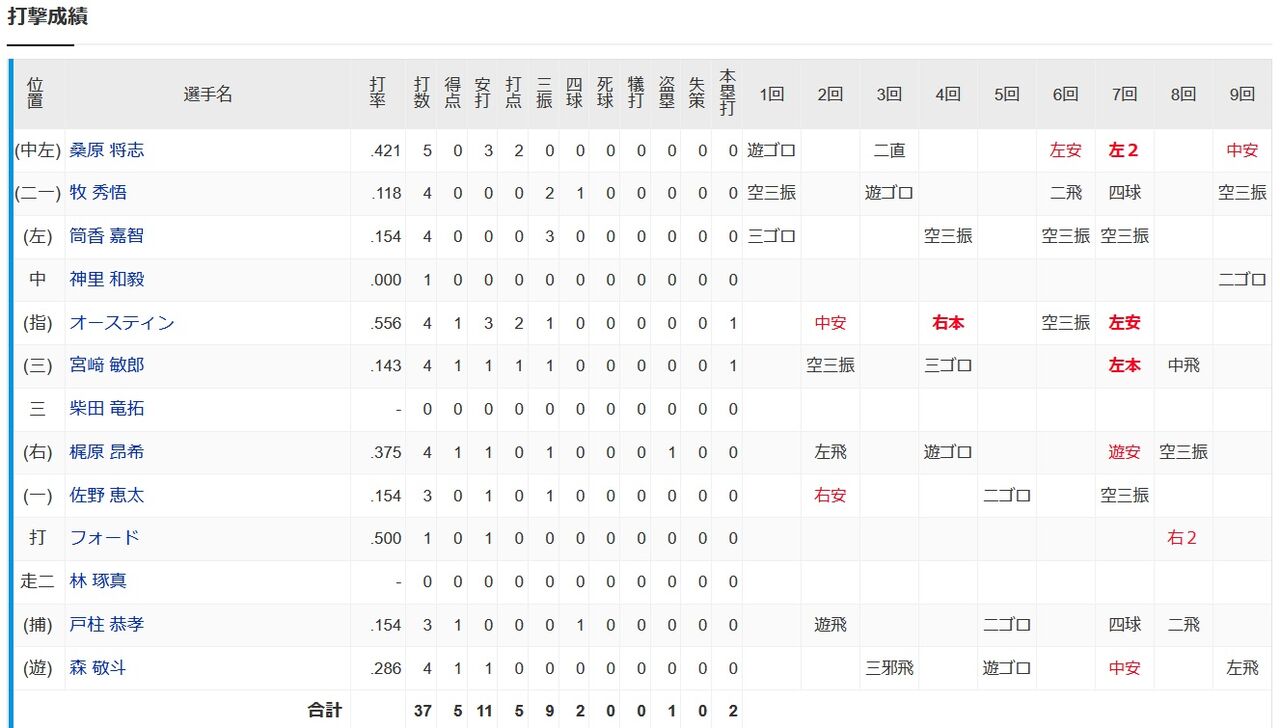 牧.118 筒香.154 宮崎.143 佐野.154