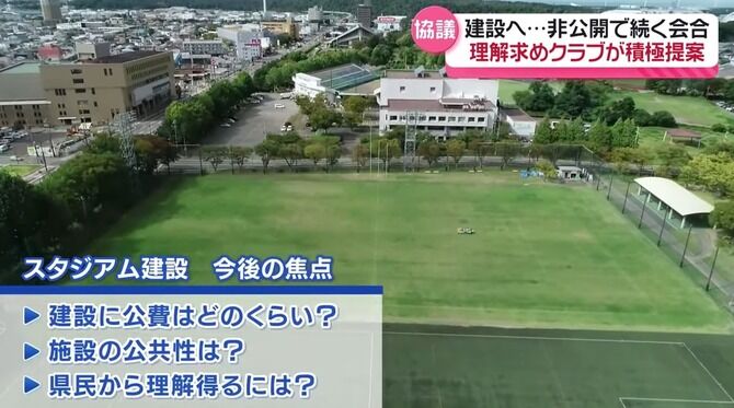 潟上市天王のクラブハウスでこの日非公開で行われた「新スタジアム整備協議会」で説明した。