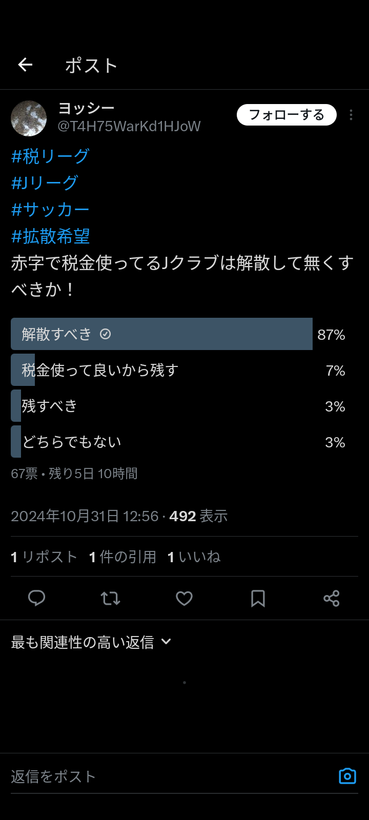 Xのサッカーファン、税リーグ煽りに怒りの2連続アンケートするも完全敗北して発狂