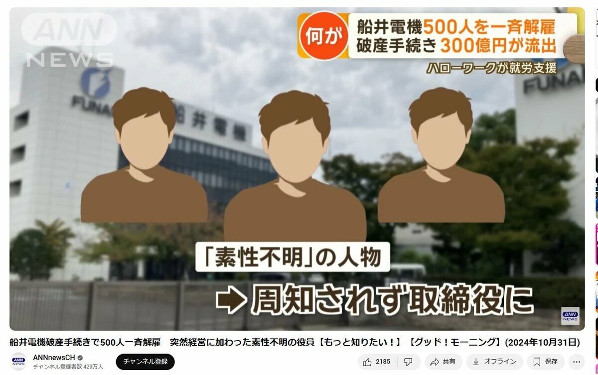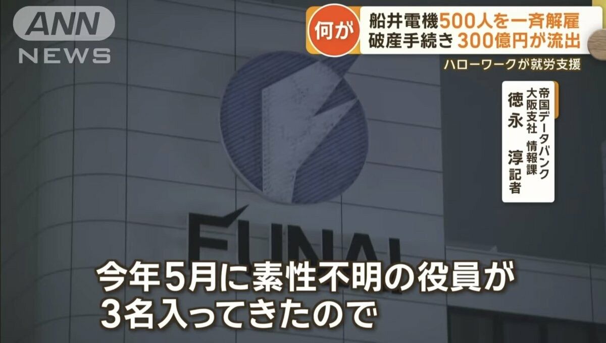 船井電機倒産・有識者「今年の5月に素性不明の役員が3名入ってきたので」