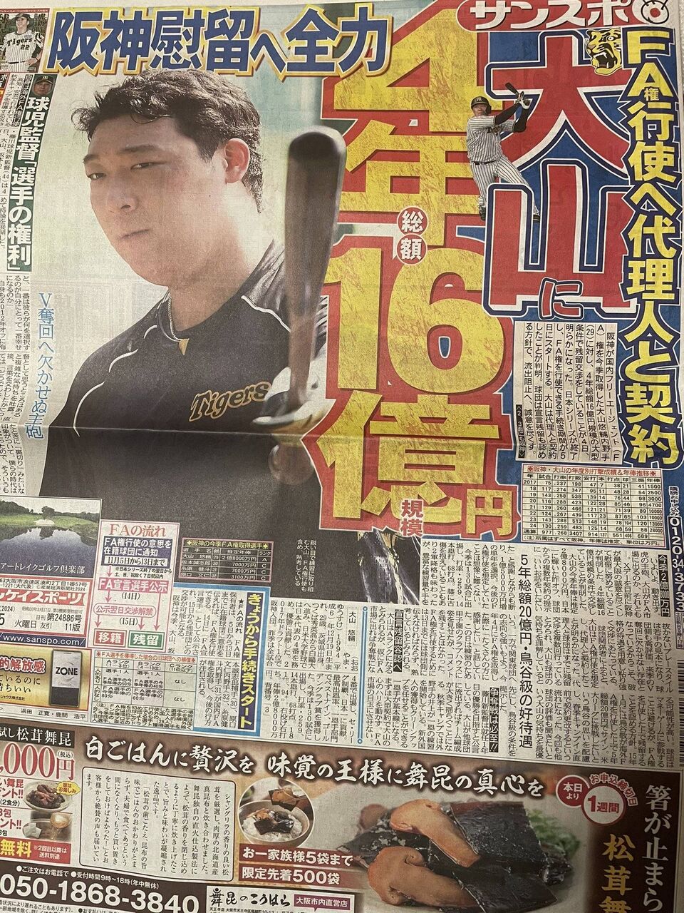 【阪神】大山、FA権行使へ向け代理人と契約w w w w w w w w w w w w w w w w w w w w