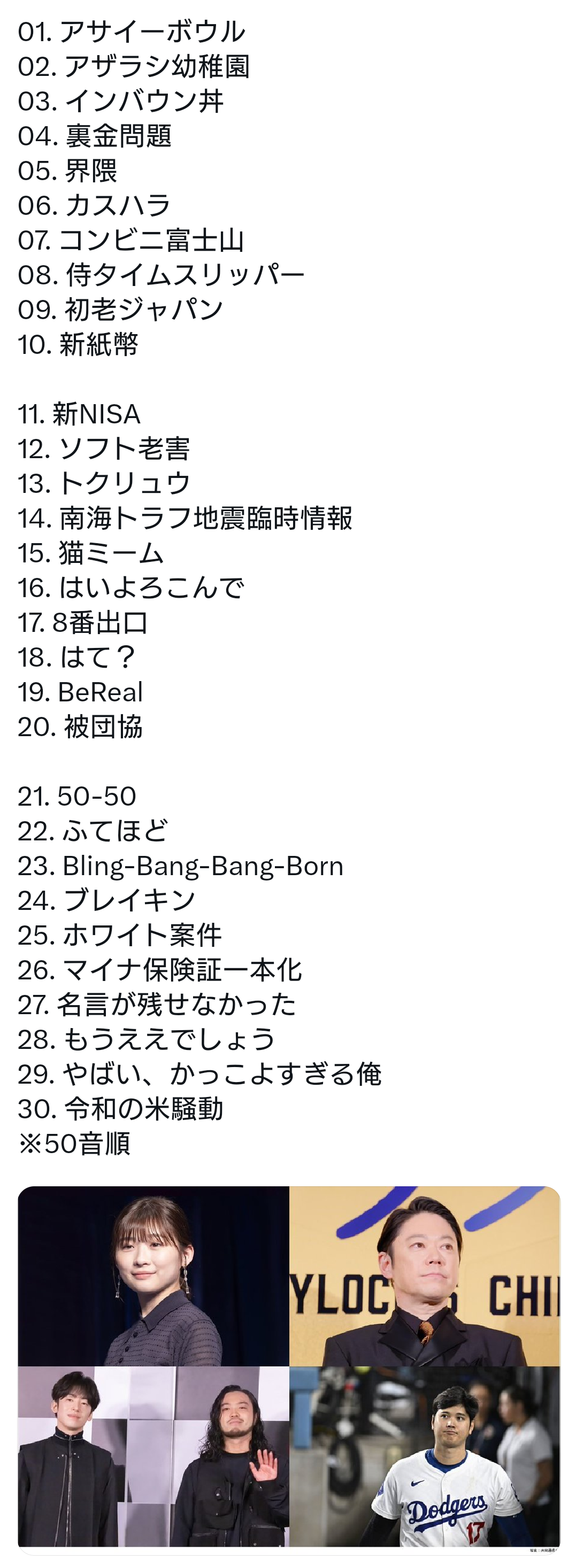 【発表】「2024ユーキャン新語・流行語大賞」ノミネート語30が決定!12月2日にトップテン発表