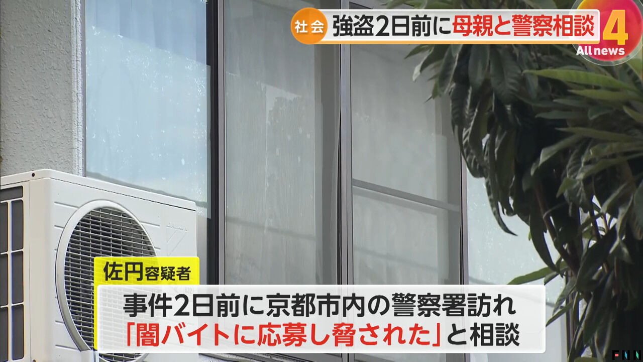 その後の取材で、佐円容疑者は事件の2日前、母親とともに京都市内の警察署を訪れ「闇バイトに応募し脅された」と相談していたことがわかりました。