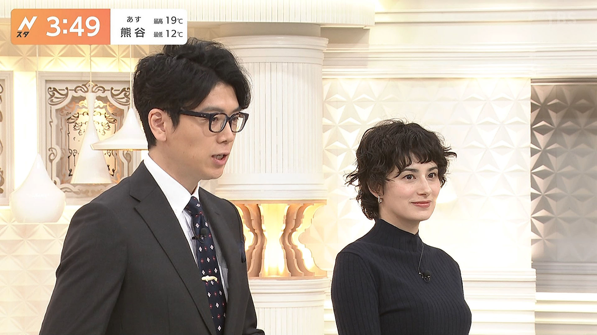 ニットで胸元を強調するホラン千秋キャスターです! GIF動画付きで! [2024年11月5日 Nスタ]