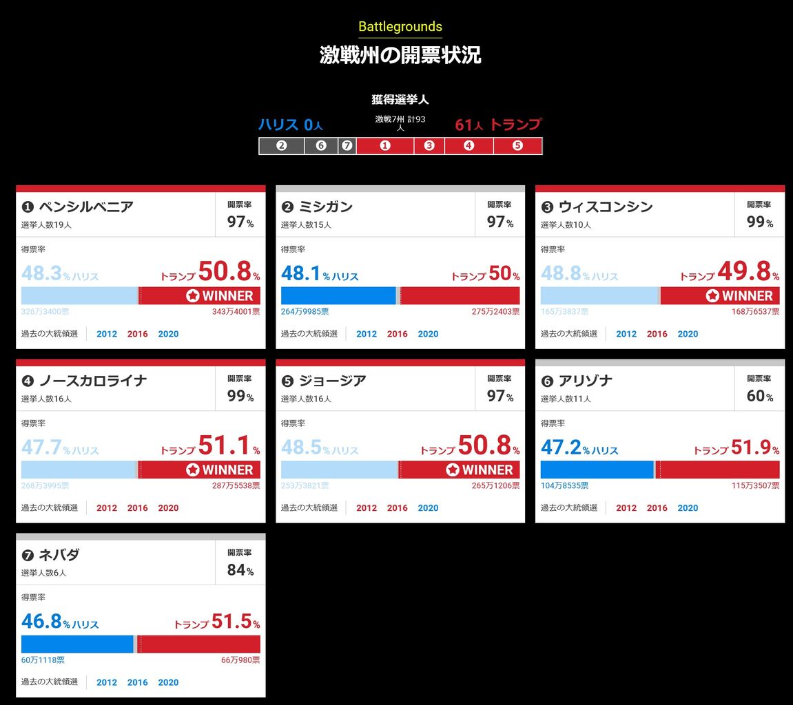 統領選201220162020? アリゾナ選挙人数11人開票率60%得票率47.2%ハリストランプ51.9%104万3460票114万8707票過去の大統領選201220162020? ネバダ選挙人数
