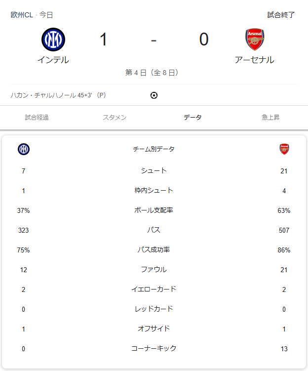 インテル、チャルハノールのPK弾を守り切りホームで完封勝ち!冨安健洋欠場のアーセナルは公式戦2連敗…https://news.yahoo.co.jp/articles/0d9ad7c541757413e6d61e7e1ea61b6ce7be1def