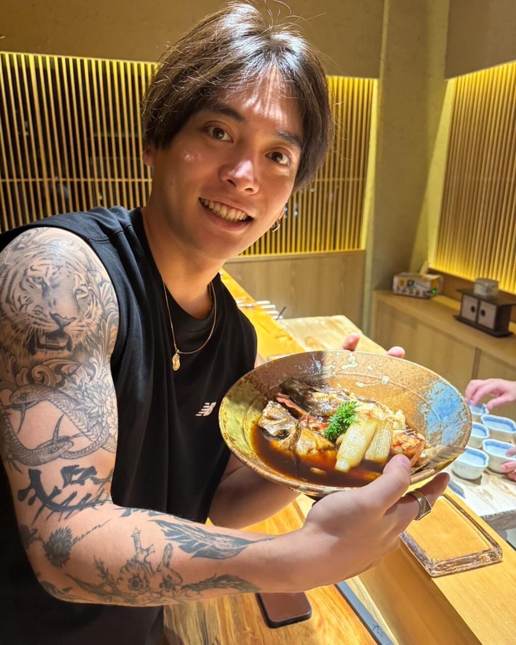 元となっているのは、9月23日に優里が自身のインスタグラムに投稿した写真で、寿司店で撮影されたと思われるものだ。優里は店のカウンターの前で記念撮影をしており、料理の入った皿を両手で持ってカメラに向かって笑顔で見せている。