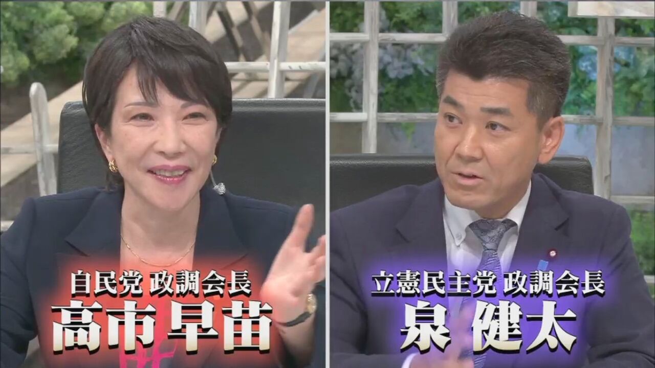 高市氏「辺野古移設閣議決定は民主政権時。なぜ今中止か。代替案を」 立憲・泉氏「公約は”一旦中止”」で「断念」じゃない