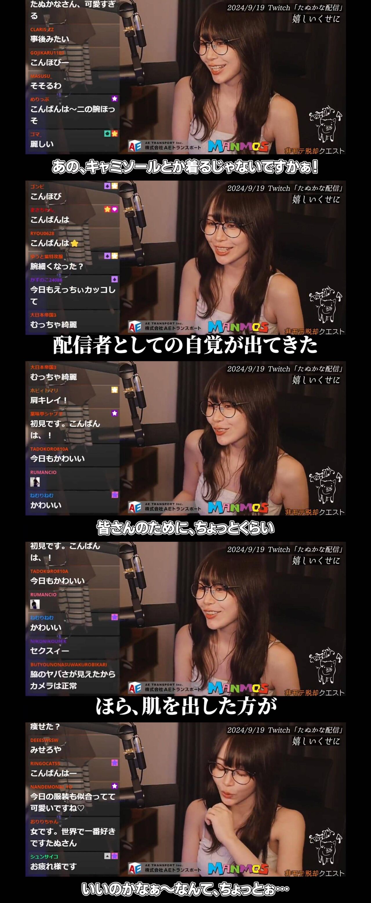 【画像】たぬかなさん、肌を露出配信に弱男さんから歓喜の声wwwwww