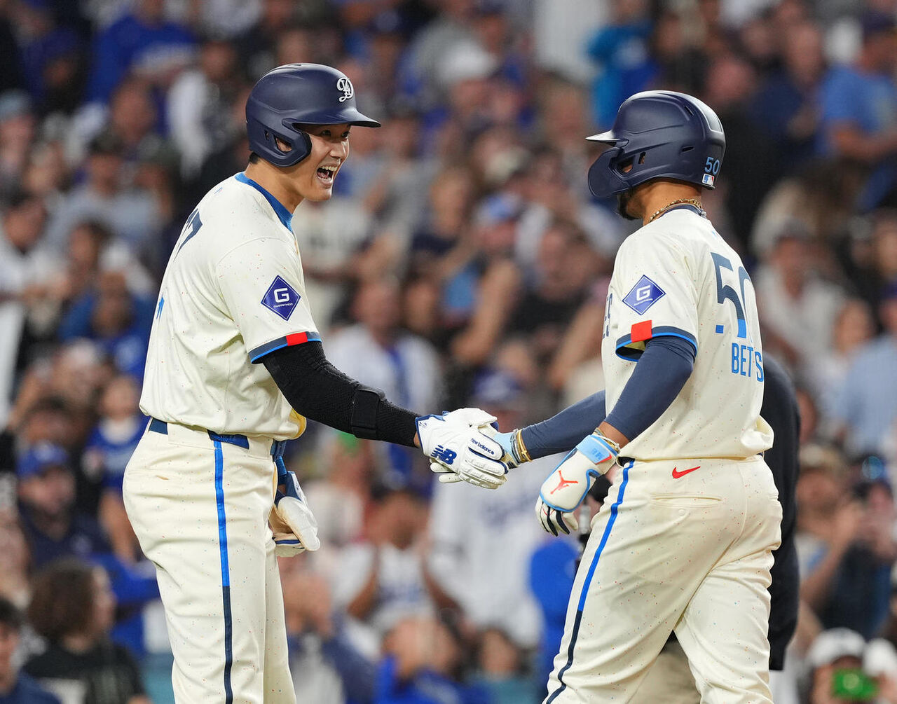 「1番DH」の大谷の後を打つムーキー・ベッツ外野手(32)は22年、23年のポストシーズン(PS)ではノーヒットに終わったが、大谷が加入した今季PSは4本塁打16打点をマークした。