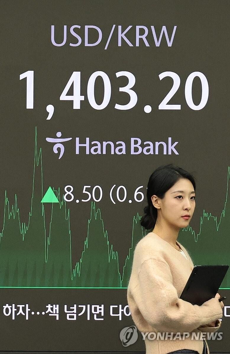 日中の終値となる午後3時半時点で1ドル=1400ウォン台になったのは2022年11月7日以来、約2年ぶり。外国為替市場は今年7月に翌日午前2時までの夜間取引を開始した。