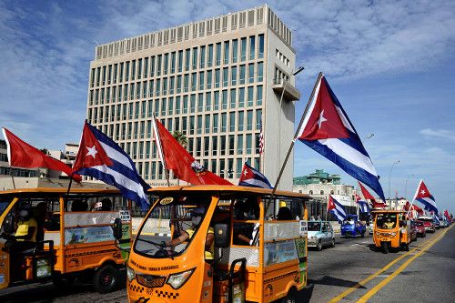 キューバの首都ハバナの米国大使館(8月)=ロイター。2016年に最初の健康被害が出た