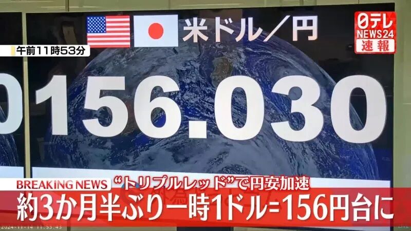 1ドル156円突破www