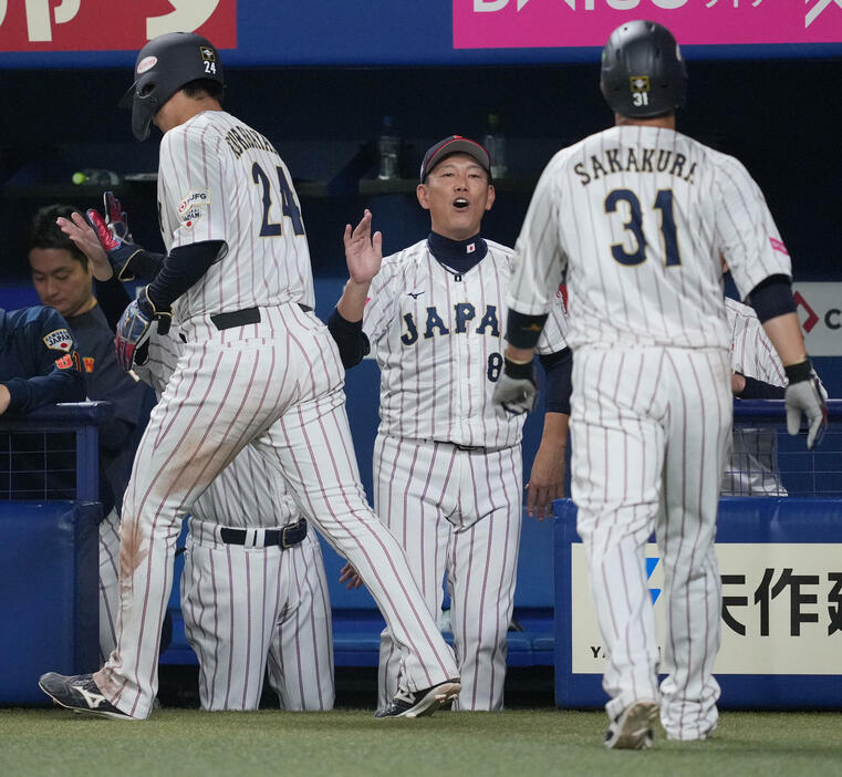 侍ジャパンの辰己が犠飛で先制。2回は1死満塁から小園が一ゴロ、3回は2死一、三塁から暴投、4回は1死二、三塁から敵失で2点を奪った。7回は牧、8回は森下、栗原の適時打で突き放した。投げては井上がオーストラリア打線を5回まで無失点に封じた。6回先頭に喫したソロ弾を許すなどして途中降板。それでも5回0/3を5安打2失点で勝ち投手になった。