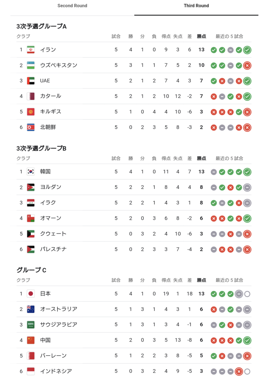 オーストラリア、サウジ、中国、バーレーン、インドネシア→トータル19得点