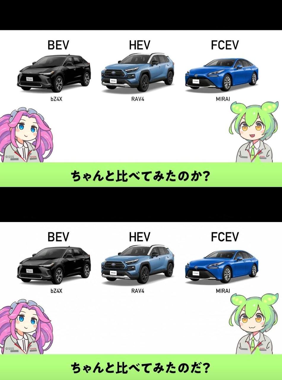 投稿したBEV、HEV、FCEVの比較動画ですが、