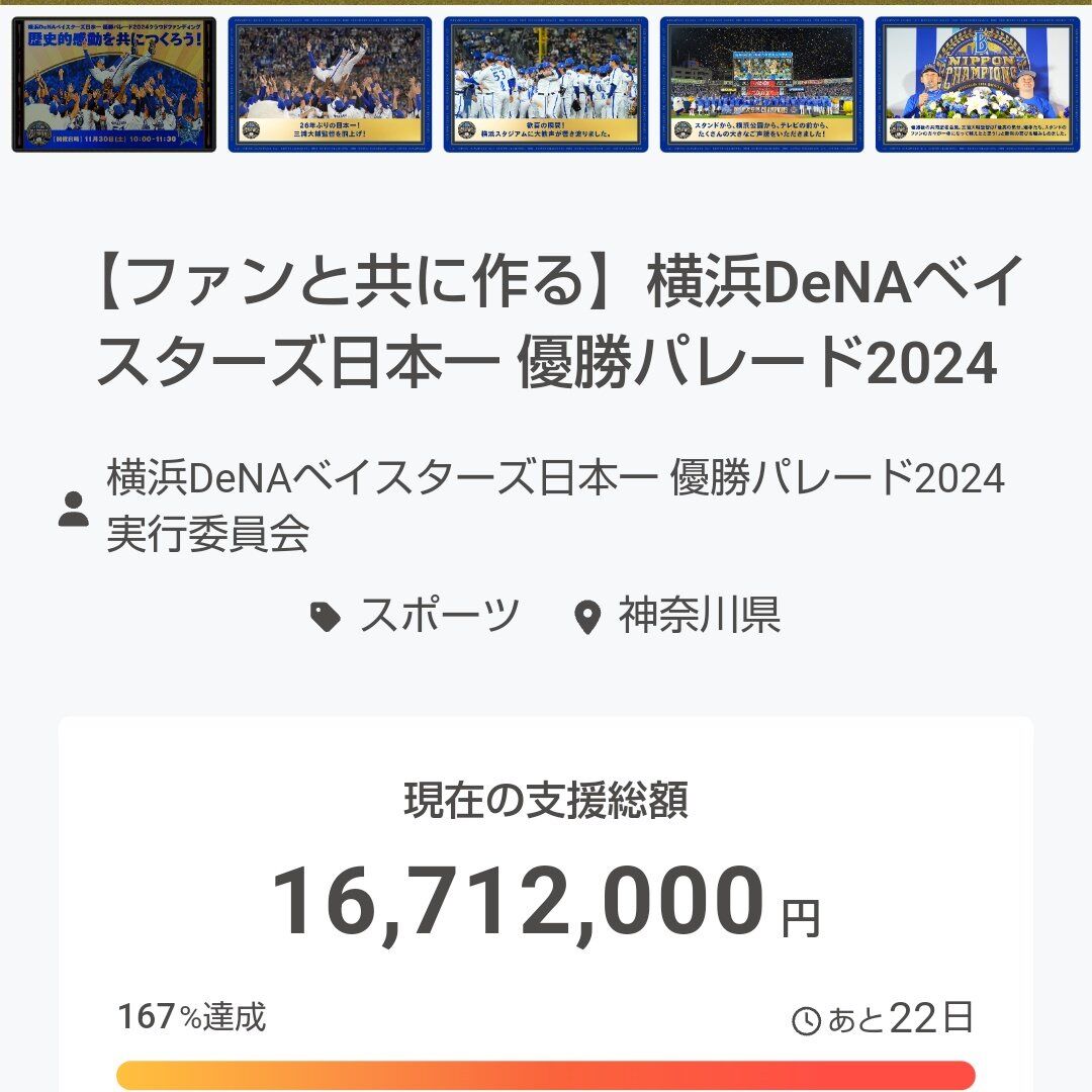 ソフトバンクさんと横浜DeNAの優勝パレードクラファンの途中経過が!