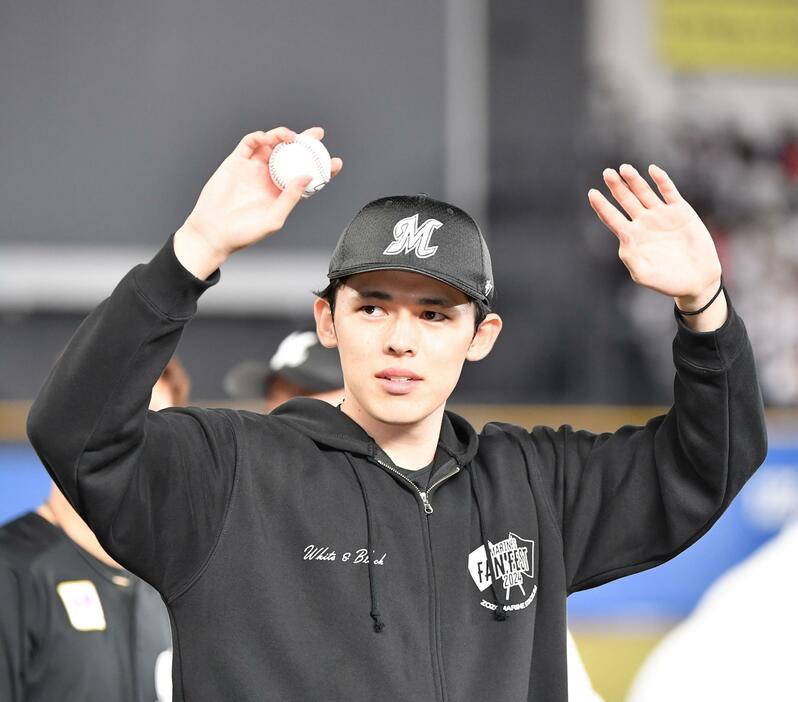 佐々木を温かく送り出そうと、吉井監督も雰囲気作りを演出した。感謝祭での冒頭あいさつで、「来シーズンからマリーンズを飛び出して高みに挑戦する選手が一人います。そうです、朗希です。朗希出てきて」と佐々木を隣に呼んだ。