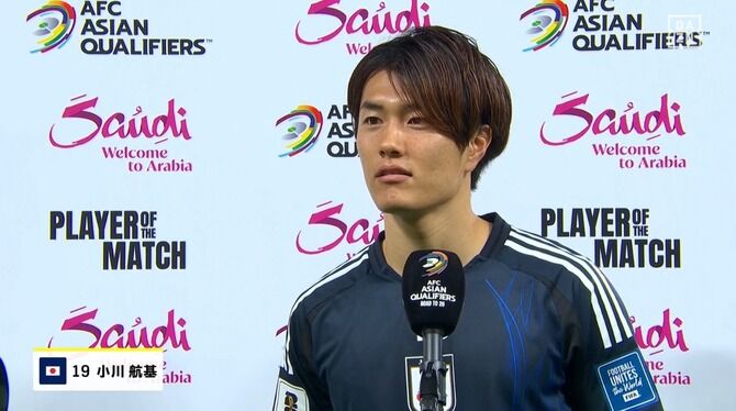 日本代表のFW小川航基が中国代表戦後のフラッシュインタビューで試合を振り返った。