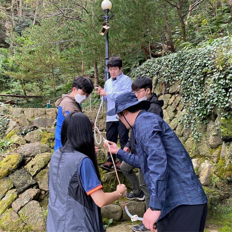 鬱陵島で火山ガスのサンプルを採取するソウル大学のイ・ヒョヌ教授(右)と研究チーム=ソウル大学(c)KOREA WAVE