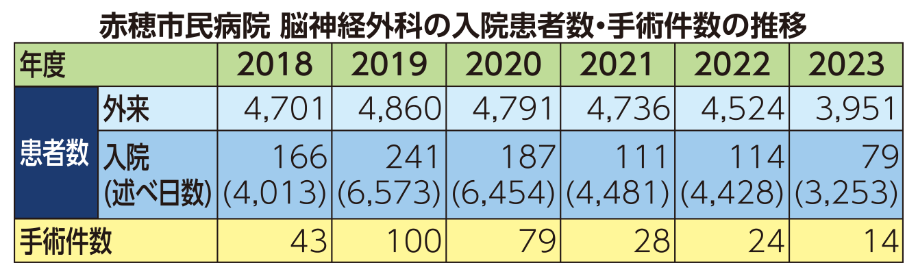 脳神経外科の患者数の推移を見てみると、男性医師を採用する前の18年度に43件だった年間手術件数は19年度に100件に急増。医療事故が度重なり手術禁止命令を受けた男性医師が21年8月に依願退職すると手術件数は激減した。この間の外来患者数にそれほど大きな増減はなく、手術件数の異様な突出が目立つ。