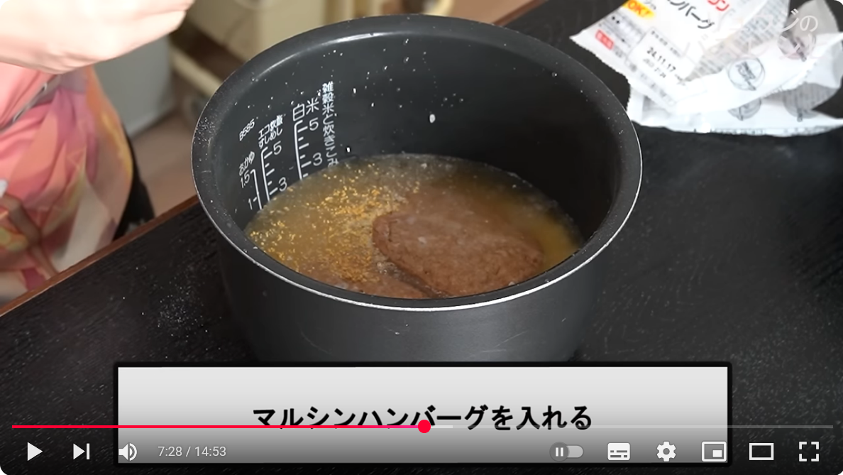 料理研究家リュウジ「えー今日は、マルシンハンバーグで、炊き込みご飯作ります」