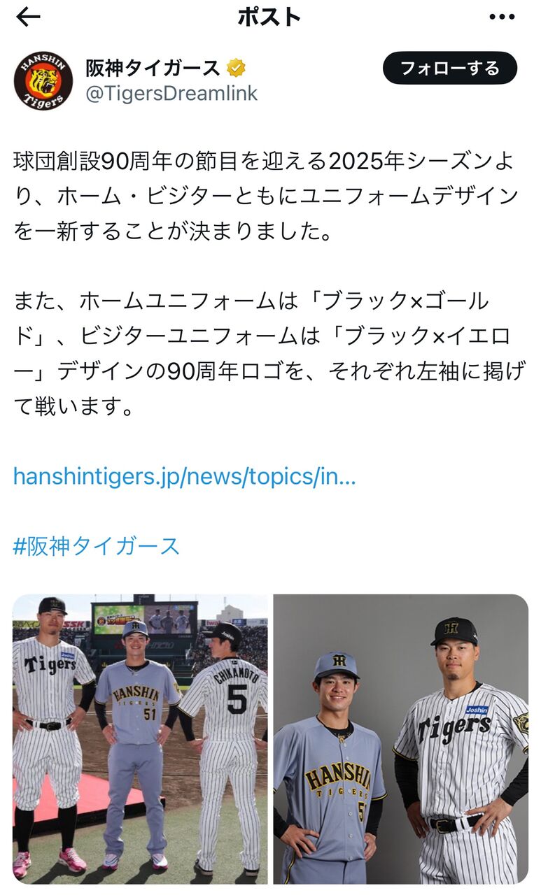 【悲報】阪神タイガースのビジターユニ、ダサくなる