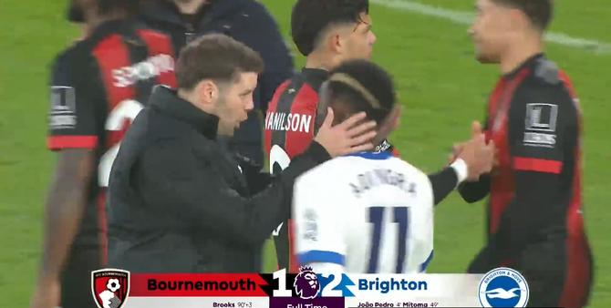 2点リードを手にしたブライトンだが、58分にはバレバが2枚目のイエローカードを提示されて退場となり、数的不利に。その後、ボーンマスの反撃に遭ったブライトンは後半アディショナルタイムにブルックスに決められて1点差に迫られるも、そのまま逃げ切りに成功。前節にマンチェスター・シティを破った勢いを代表ウィーク後も継続し、リーグ連勝を飾った。