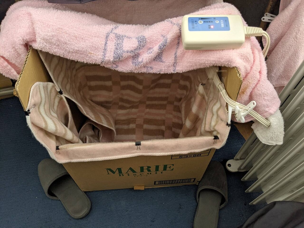 (ヽ´ん`)「パネルヒーターが高いから電気毛布で自作した。電気代1時間0.5円ぐらい。